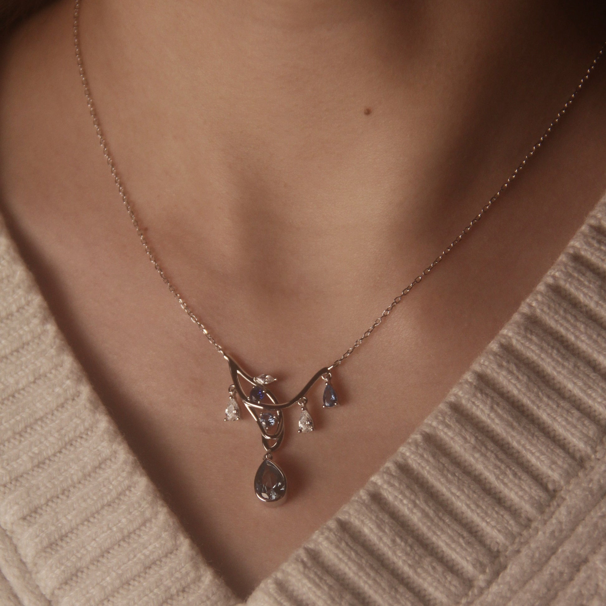 BLUE SIDE NECKLACE - WHITE GOLD